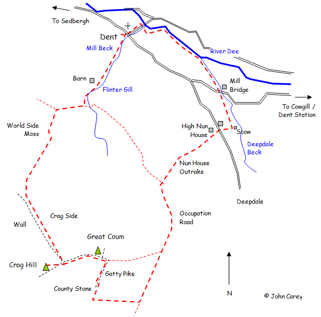 - Crag Hill [682m] and Great Coum [687m] from Dent Village - 9 miles circular