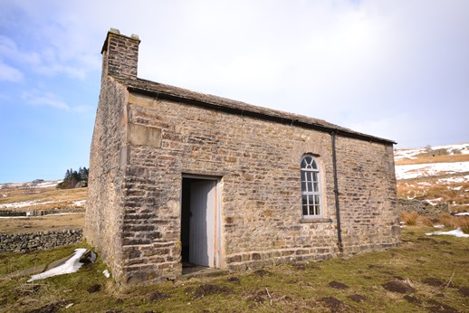 Passing through the metal gate now proceed down hill bearing left and contouring around the hillside. Sometimes this path is difficult to spot but the objective is to eventually proceed in a northerly direction dropping downwards to meet a wall and barn. At this point the path will be paralleling the railway line all the way to Aisgill. Pass to the right hand side of the barn and continue along an easy path to Aisgill through a gate and to the road. Bear left along the road for 100m and then turn right [just before the cottages] along a track passing over the railway line. The track bears left and at then right. At this change in direction make a slight deviation to Hellgill Force, a spectacular waterfall with a good vantage point and possible lunch stop above. This feature is easily missed as it is located below the track. Take the right hand track and proceed up the hill across a bridge through a farm to Hell Gill Bridge turning right to cross a very narrow and deep ravine. This track is the old coach road known as Lady Anne Highway. Follow the gently undulating 'highway' in a southerly direction taking the left hand fork [at a vehicle prohibition sign] eventually with a wall to the right. After 1 mile the ruin of High Hall is reached and a ford. Another 2/3 mile further along the highway reaching a gate across the track. There are two main options for the return either using the Pennine Bridleway or via Lunds. The easiest involves passing through the gate and carrying on along the highway. The track dips into a small ravine and has been subject to landslip in the past. About 1/4 mile after the ravine look for a new gate in the wall together with Pennine Bridle Path sign post. Pass through the gate with a lime kiln on the left. The bridleway is waymarked with wooden posts down to the side of Cobbles Plantation and emerging at Ure Force waterfalls. Cross the bridge and follow the bridleway to the former Moorcock Inn and the T junction. The second option takes in Shaws Waterfall and Lunds Church: Passing through the stile immediately before the aforementioned gate on Lady Anne Highway proceed directly and then diagonally downhill to a gate at the rear of Shaws and the by steps (take care as can be very slippy!) down to a wooden footbridge in front of the waterfall. Shaws, now a private house was formerly the Garsdale Youth Hostel until the 1970s. Continue downhill across another footbridge and passing through a farmyard to the little hamlet of Lunds with it's now disused and privately owned church. The church (open to visitors) and graveyard are worth investigation.